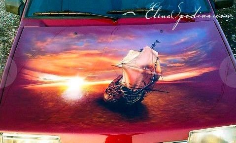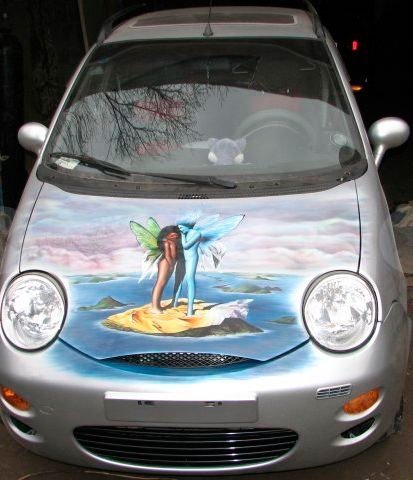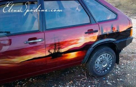 Як розповідає художниця, процес створення аерографічних картин нагадує звичайне фарбування. Щоправда, потім потрібно нанести тонкий малюнок, закріпити його лаком та відполірувати. Технологія ж об’ємної аерографії взагалі дозволяє досягати майже 3D-ефекту. Картини не вигоряють і можуть проіснувати довше, ніж сама автівка.
