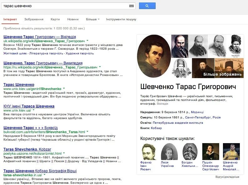 Українською мовою запустила компанія Google свою Мережу Знань (Knowledge Graph). Це алгоритм пошуку, який покликаний краще розуміти пошуковий запит і сприймати його не як просто слова, а як значення і зміст, - пише Watcher.
