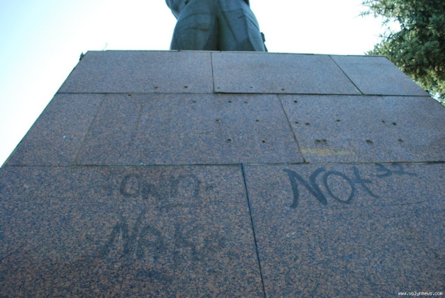 Напис той вже давно вкрали - буковки переплавили. А чоловік хай собі стоїть!!!Григоренко вже не знає, на чому то вчергове пропіаритися))