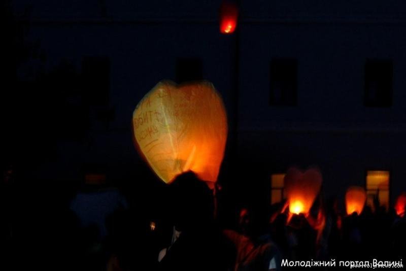 Такі паперові конструкції у формі сердець та куполів потрібно було розкласти, підпалити та відпустити вгору, пише «Молодіжний портал Волині».