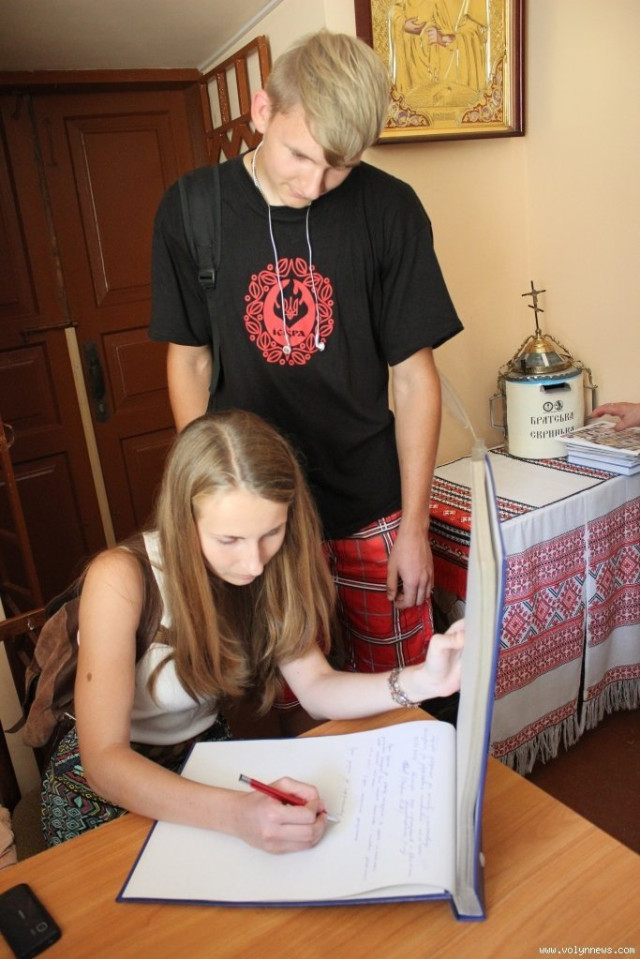 Андрій Боярчук розповів про найцікавіші експонати, серед яких стародруки XIX століття та скарб монет, який знайшли у свинцевому гаманці під розкопок на вулиці Кафедральній, 13. Розповів він і про сучасного правонаступника історичного братства – Волинське крайове братство святого апостола Андрія Первозванного та продемонстрував стенд із книгами, які вийшли з-під пера його членів. Більшість учасників екскурсії відвідали Музей історії Луцького братства вперше. Після завершення екскурсії представники молодіжних громадських організацій залишили запис у книзі відгуків.