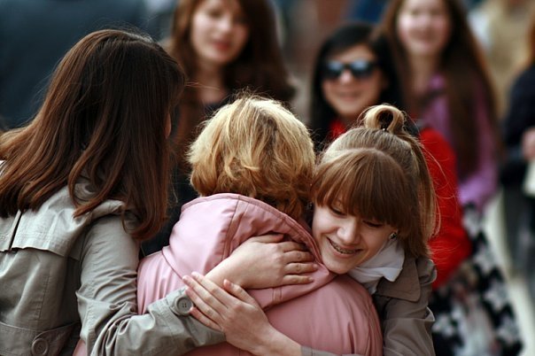 За словами організаторів, групи школярів та студентів, акція була приурочена до Міжнародного дня обіймів.