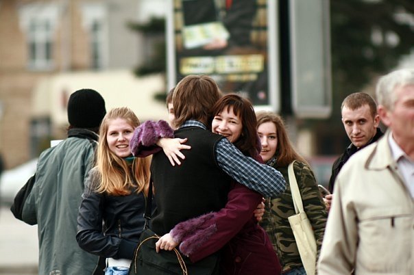 Молодики «нападали» на перехожих …з обіймами. ФОТО