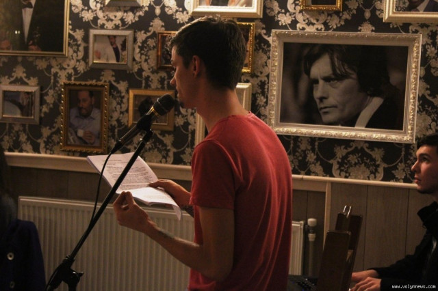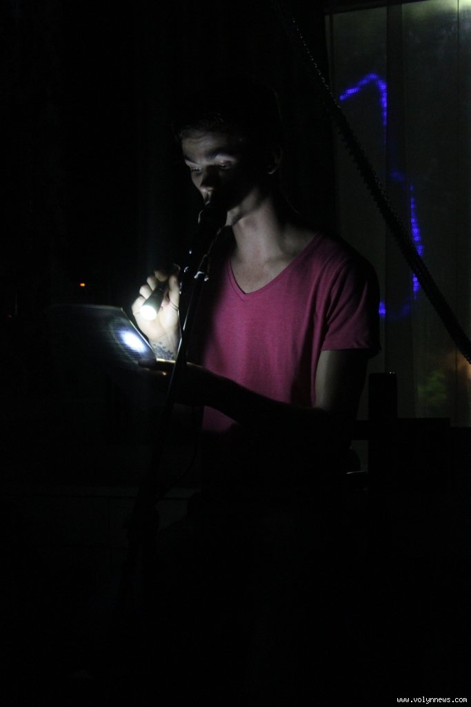 Митець, якого надихає хаос, читав у Луцьку з ліхтариком. ФОТО