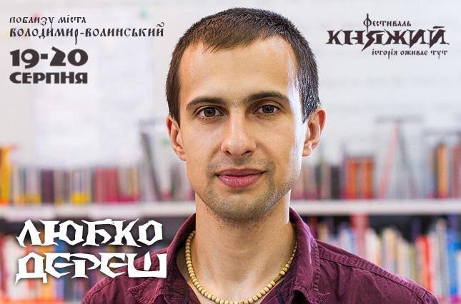 Фестиваль «Княжий», що відбудеться у парку села Заріччя Володимир-Волинського району, відвідає сучасний культовий український письменник, улюблений автор багатьох – Любко Дереш. Його твори зачаровують, а книги – продаються із шаленою швидкістю, тож Любко Дереш дійсно має що розповісти гостям фестивалю.