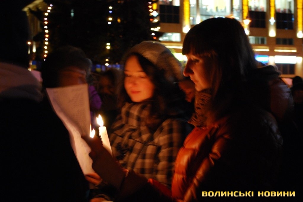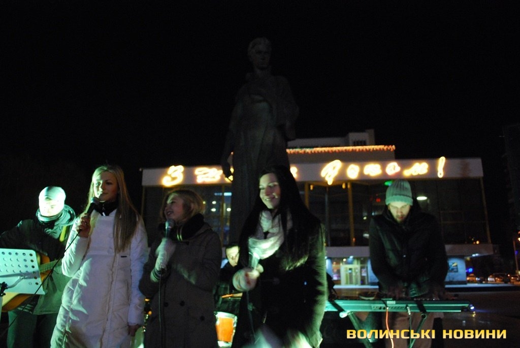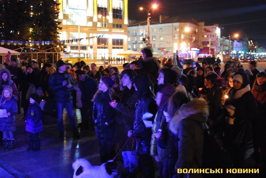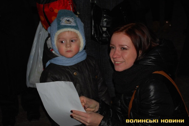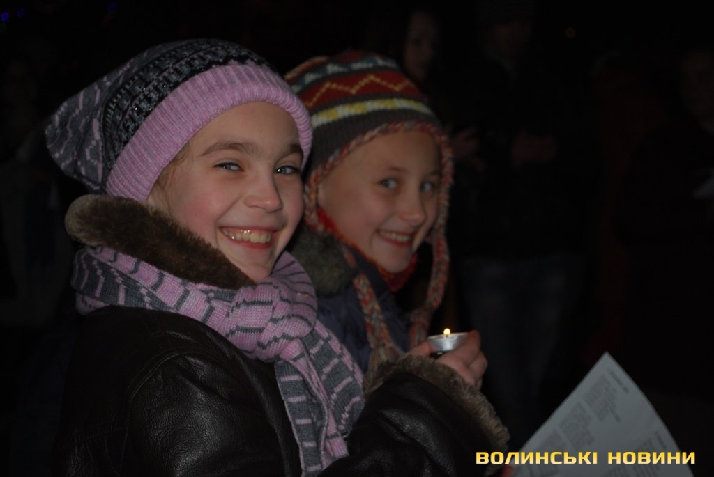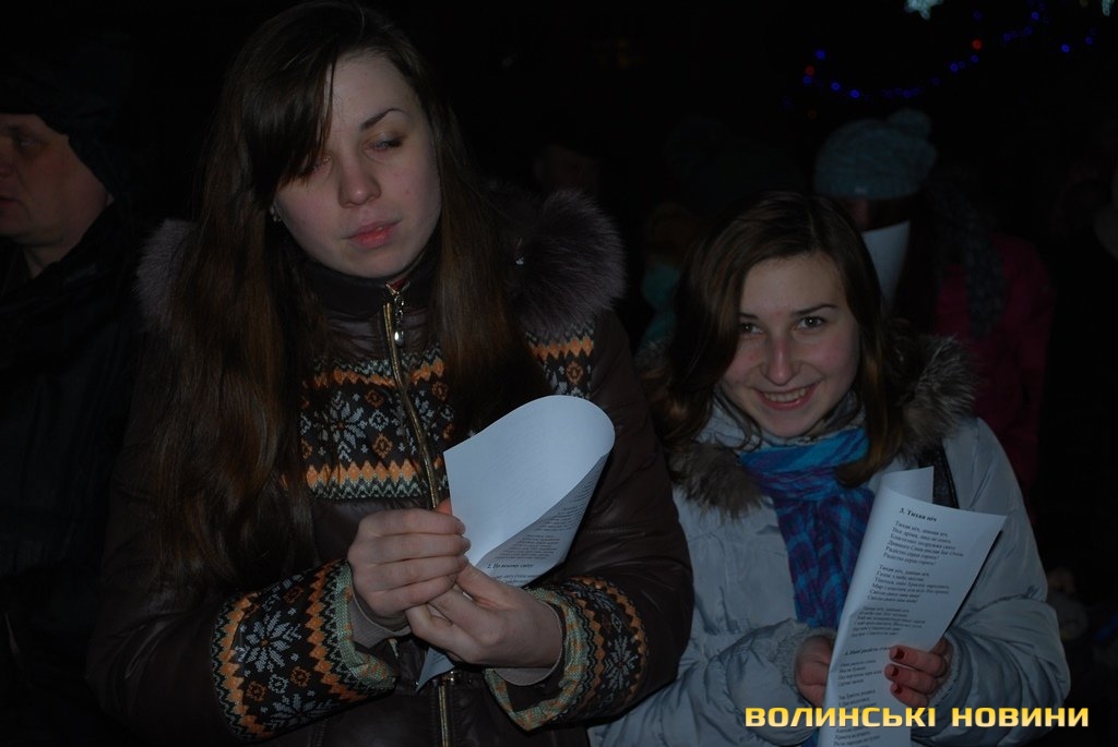 Організатором співучого флешмобу «Різдвяна колядка» стала Волинська обласна громадська організація «МИ +». Зауважимо, що дійство відбувалось у рамках благодійного проекту «Чужих дітей не буває», який успішно працює у Луцьку вже декілька років. Попри холодну погоду, на Театральному майдані поруч з пам’ятником Лесі Українки зібралось чимало дітлахів, молоді та людей поважного віку. Кожному з них організатори вручили листівки з текстами колядок, та свічки.