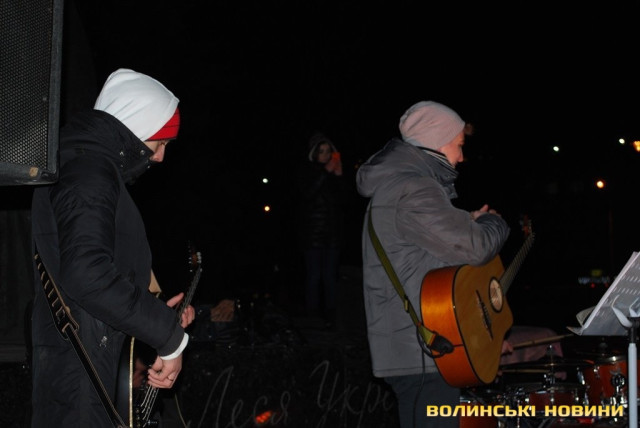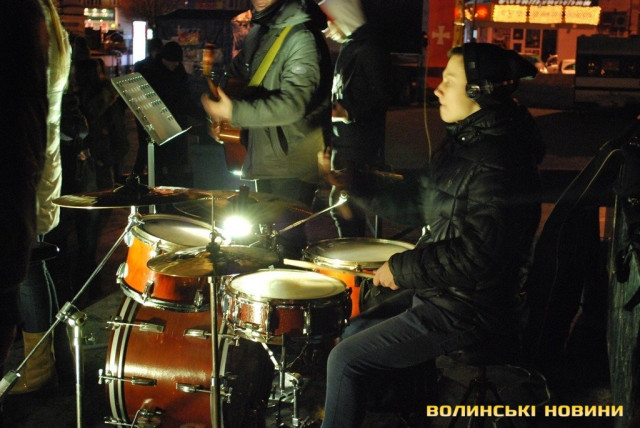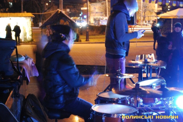 Колядки під електрогітару в центрі Луцька
