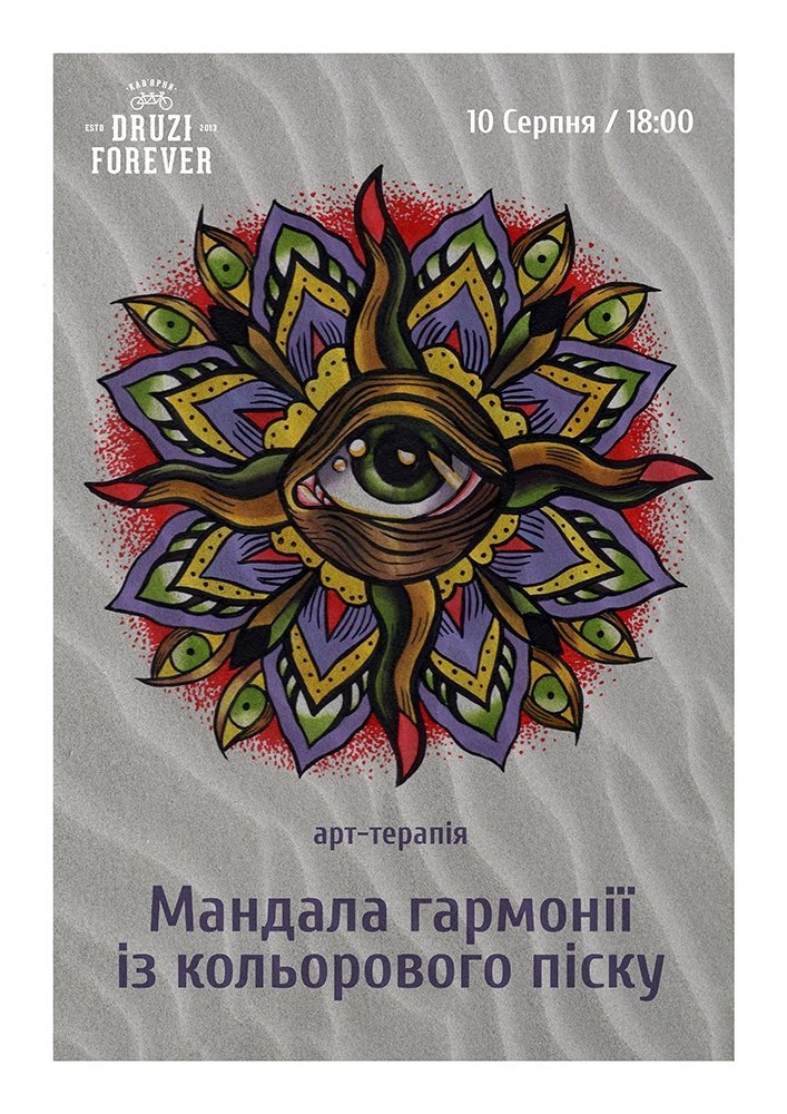 Майстер-клас із арт-терапії «Мандала гармонії із кольорового піску» відбудеться за давньоіндійською культурою, поінформували організатори заходу.