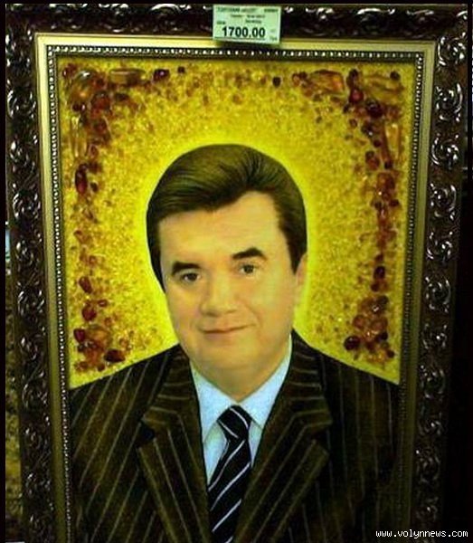 У Житомирі, в торговому центрі продають портрети президента Віктора Януковича зроблені з бурштину.