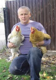 Окрім кролів, розводить Дмитро Іванович і породистих курей: «брами», «оргпінтони», «кохінхіни», «гудани». «Гуданів» (найбільше полюбляє голубих) придбав у вже покійного нововолинського діда Пилипа, який привіз їх у рідні краї з Сибіру, де відбував заслання. Так ця порода, якій притаманна добра несучість, «розійшлася» по Волині. А півні ростуть до семи кілограмів! Величаво походжають по подвір'ї, охороняють дім, а коли заспівають вдосвіта, то будять усю округу. Птиця має попелясто-голубе, біле і оранжеве пір'я, яке виблискує на сонці.
