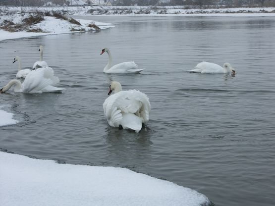 У Ковелі на річці Турія в районі водосховища, де вода зимою тривалий час не покривається льодом, з’явилися граціозні лебеді-шипуни. Цьогоріч їх прилетіло три пари.