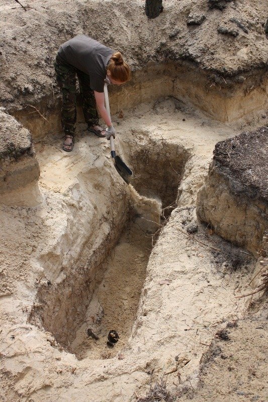 Оскільки концентрація захоронень у східній частині траншеї вказувала на західну межу кладовища, вирішили перевірити його продовження на гребені підвищення у східному напрямку. Закладений на схід від розвідульної траншеї шурф розміром 2 х 2 м виявив ще дві плями, напевне, від могильних ям, через що їх вирішили не відкривати.