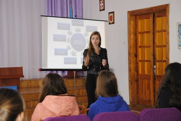 Головний лектор і керівник практичних занять із дебатів, керівник громадської організації «Молодь Во!» - Катерина Полтавець.