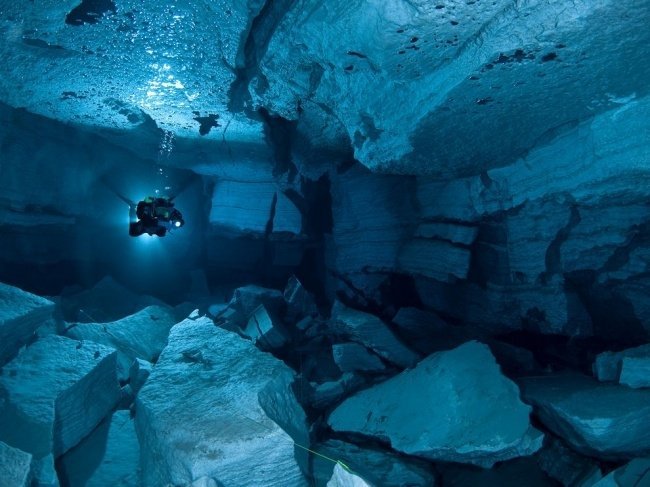 Це найбільша в світі підводна гіпсова печера, розташована в Пермському краї Росії. Віктор Лягушкін