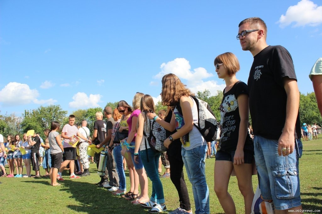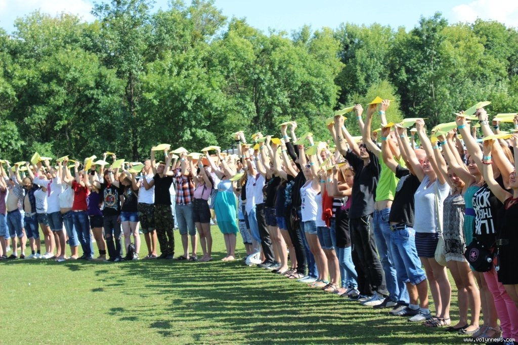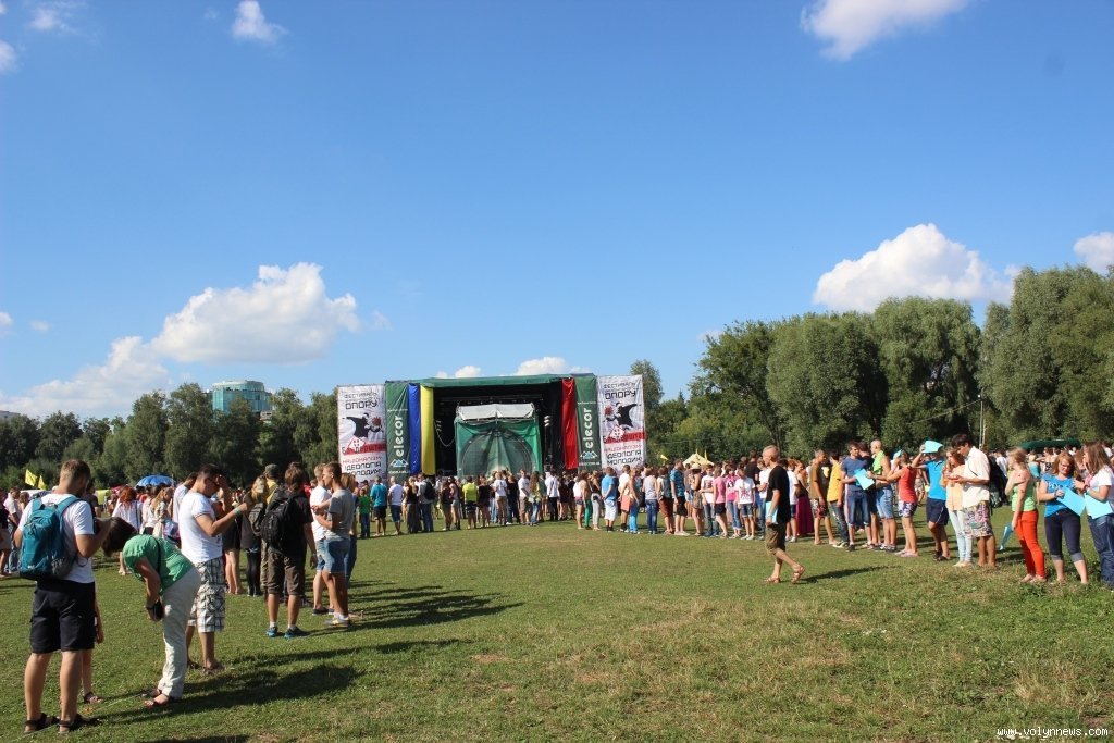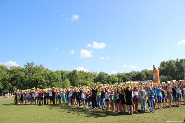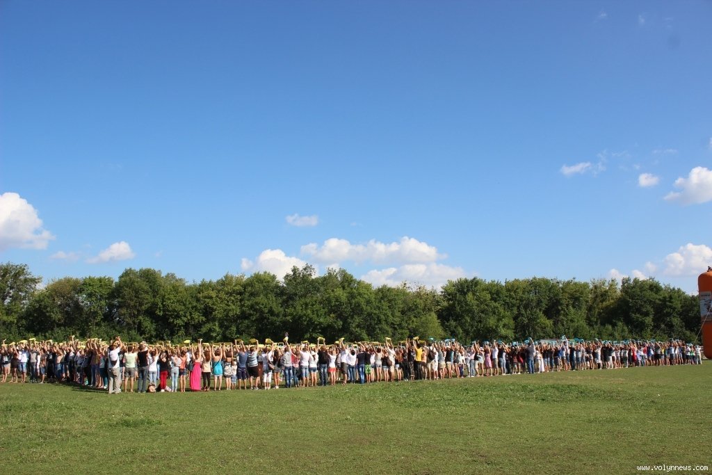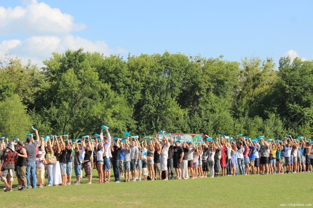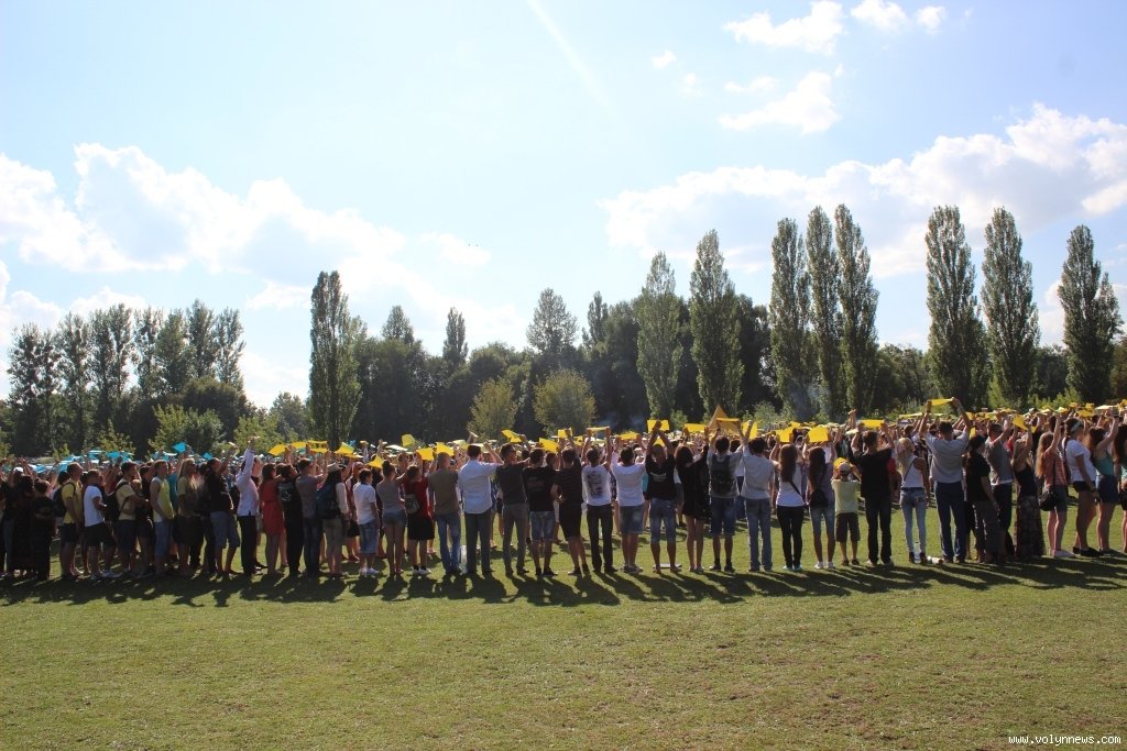 Велетенський тризуб утворили учасники флеш-мобу, який відбувся під час фестивалю «Бандерштат».