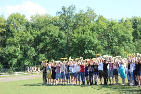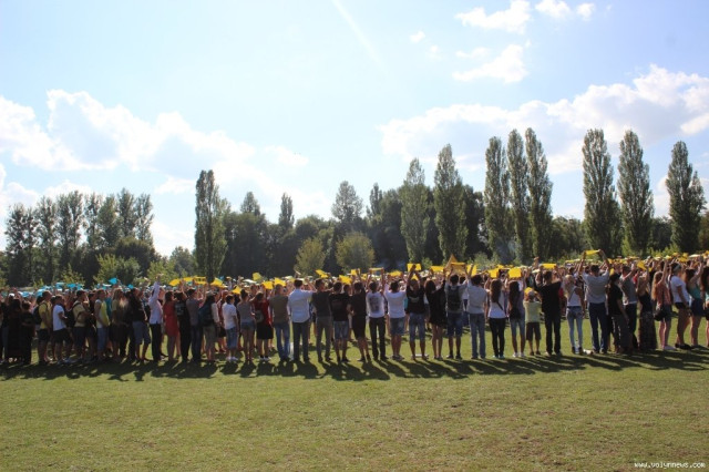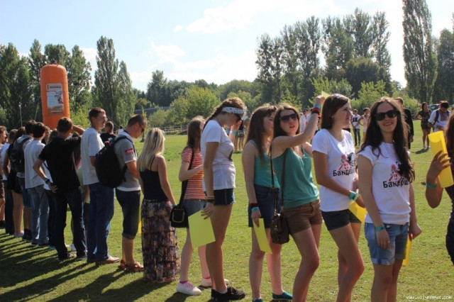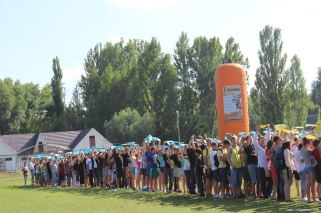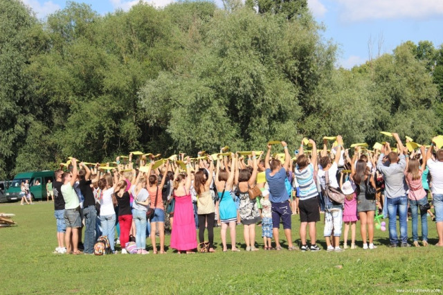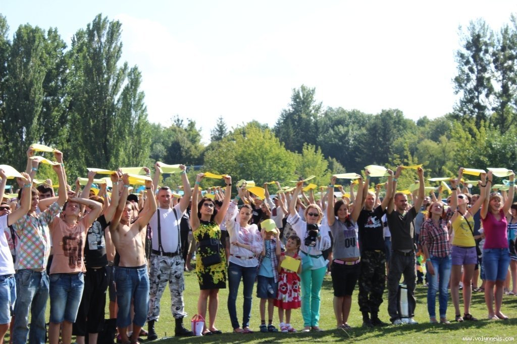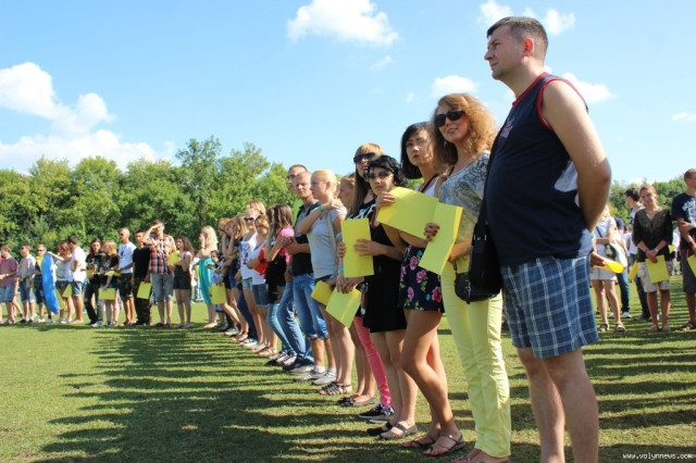 Взяти участь у флеш-мобі запрошували усіх бандерштатівців, велетенське зображення герба України фотографували з повітря. Кожен учасник отримав жовті або сині аркуші кольорового паперу, які тримав над головою під час флеш-мобу.