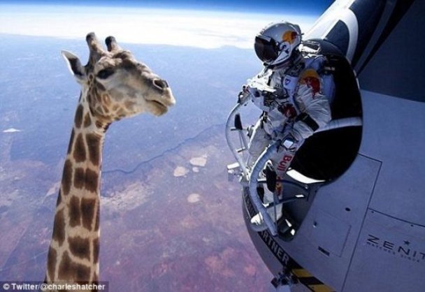 В середині жовтня, одразу після стрибка 43-річного австрійця Фелікса Баумгартнера з 40-кілометрової висоти, інтернетом поповзли фотожаби. Інтернет-жартівники «запустили» в космос відомих спортсменів та політиків. Зокрема, побажати успіху спортсмену-екстремалу на журавлі відправили і російського президента Володимира Путіна.