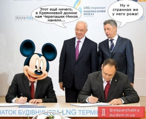 Після того, як стало відомо, що Україна підписала дорожезну угоду вартістю 1,1 млрд доларів про будівництво терміналу з прийому зрідженого газу з особою, яка не мала на це повноважень, і взагалі є невідомо ким, в інтернеті і преса, і прості блогери почали висміювати дану ситуацію.