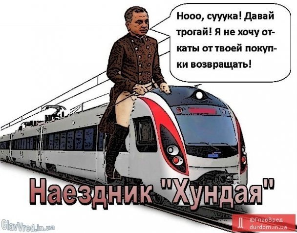 Після того, як з настанням морозів гордість, а тепер вже і сором міністра інфраструктури Бориса Колеснікова супер-потяг Hyundai почав регулярно ламатись і простоювати в дорозі по декілька годин, «чудо-машина» корейських інженерів стала героєм фотожаб. Найбільше підлила масла у гумористичний вогонь нещодавня ситуація, коли новий поїзд прибув до пункту призначення лише за допомогою буксиру у вигляді старенького радянського тепловоза типу «ЧМЕЗ».