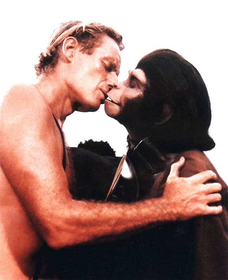Перший поцілунок «між видами» в кіно з'явився в цьому фільмі 1968 року. Шимпанзе-психолог доктор Зіра (Кім Стенлі) зустріла пораненого астронавта Джорджа Тейлора (Чарлтон Хестон) і допомогла йому поновитися. Перш, ніж відлетіти, Тейлор подарував їй поцілунок на прощання.