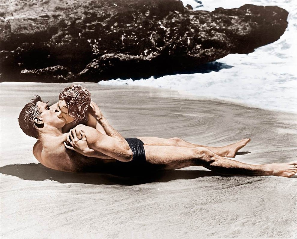 Берт Ланкатсер і Дебора Керр. Одні з найлегендарніших обіймів в сцені фільму 1953 року. Культову сцену на пляжі знімали на Гаваях.