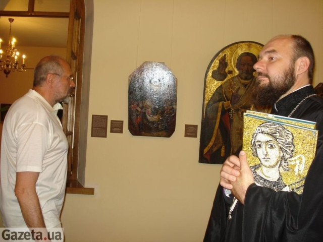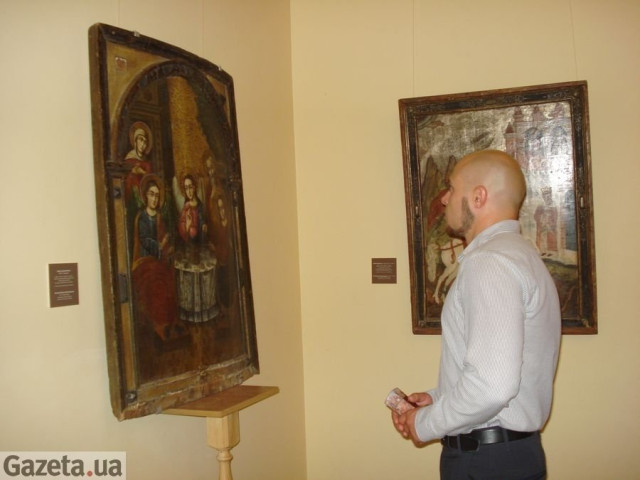 "Ікони ми реставруємо постійно, а про свою участь у виставці дізналися кілька місяців тому. Тут представлені залишки іконостасів – маленькі уламки релігійної культури, що існувала в українських селах", – говорить працівниця Національного художнього музею України Галина Белікова. Займається зберіганням релігійних реліквій понад 25 років.