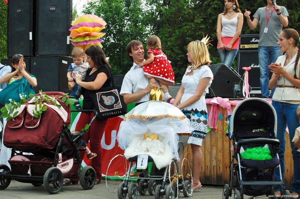 А до карнавалу дитячих колясок долучилися молоді матусі й татусі. Завдання найкреативніше прикрасити «колеса» своїх малят вдалося виконати усім без вийнятку. Переможців нагородили у трьох номінаціях. А як носити малюків, залишаючись при цьому стильною жінкою, показали молоді слінгомами.