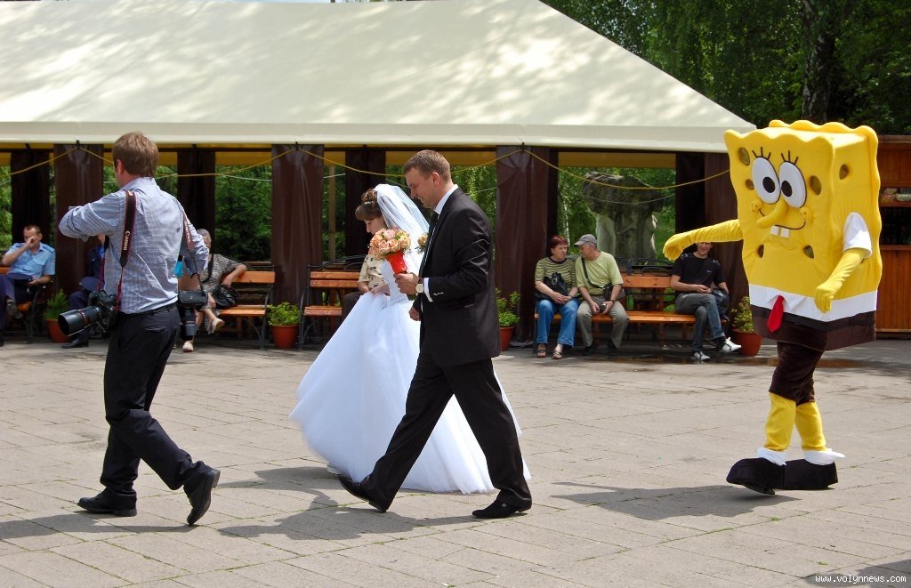А протягом усього дня присутніх розважали веселі аніматори, перевбрані у «мультяшних» героїв. Усіх без виключення залишив у захваті Губка Боб. Йому навіть вдалося «засвітитися» на весіллі.