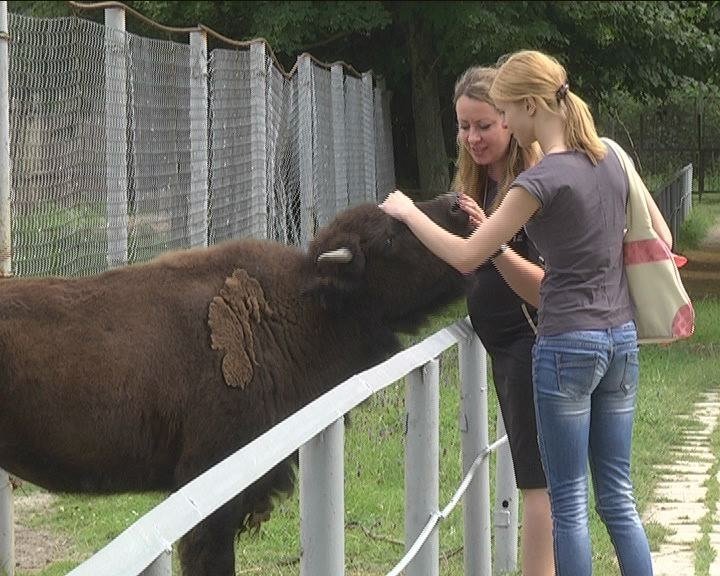 Велика кицька муркоче і треться об руку Людмили. Бізон так само поспішає поластитися, коли чує голос. Видно, що тварини звикли до директора, знають її голос і пускають на свою територію. Навіть сувора мама – ведмедиця Маша – дозволяє двом нащадкам трошки поспілкуватися з людиною. Шерсть ведмедів чиста, без реп’яхів, вони добре вгодовані.