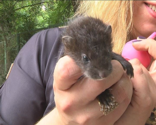 Тиждень тому в луцькому зоопарку з`явилася маленька видра. Вона вже почала звикати до людей, бо спочатку дуже кусалася. Поки тритижнева малеча живе у спеціальній клітці з контейнером і їсть з пляшечки.