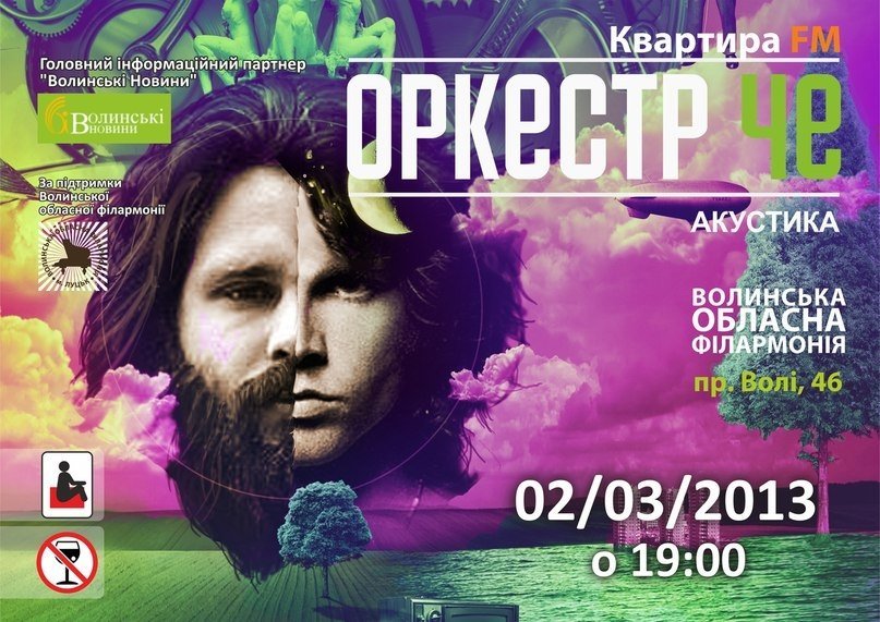 «Квартира FM» запрошує всіх шанувальників живої музики на перформанс «Оркестру Че», що відбудеться 2-ого березня у кінозалі «Рояль» за підтримки Волинської обласної філармонії.