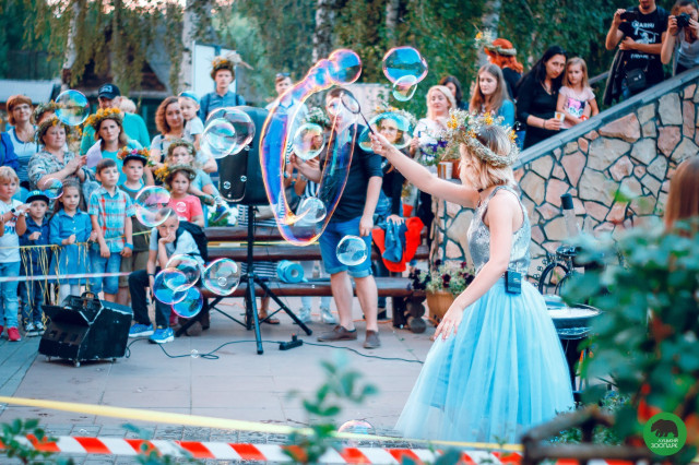 Для гостей влаштували бульбашкове та вогняне шоу, створювали аквагрим. Навіть студенти біологічного факультету СНУ, які зараз проходять практику в зоопарку, допомагали відвідувачам із плетіння вінків, а працівники зоопарку організували частування.
