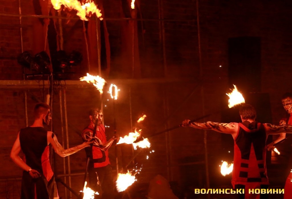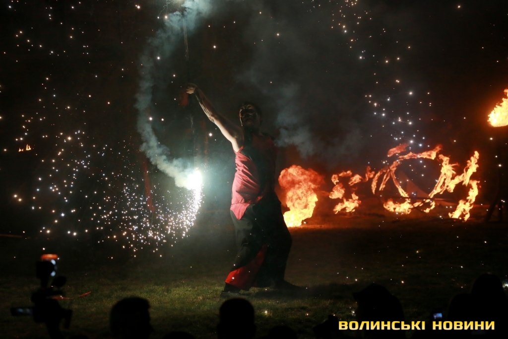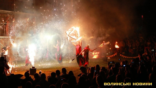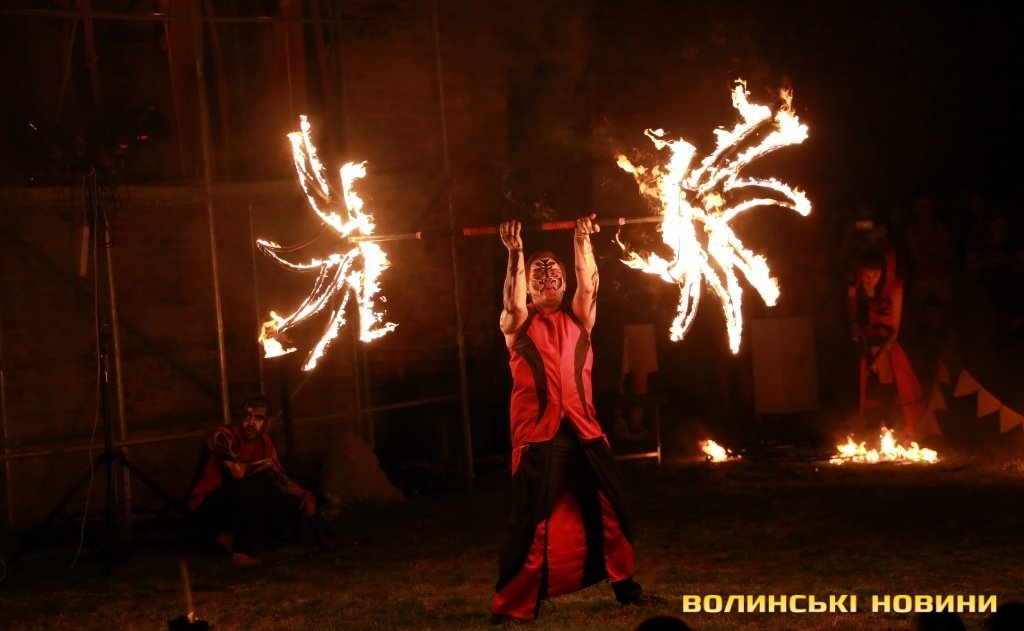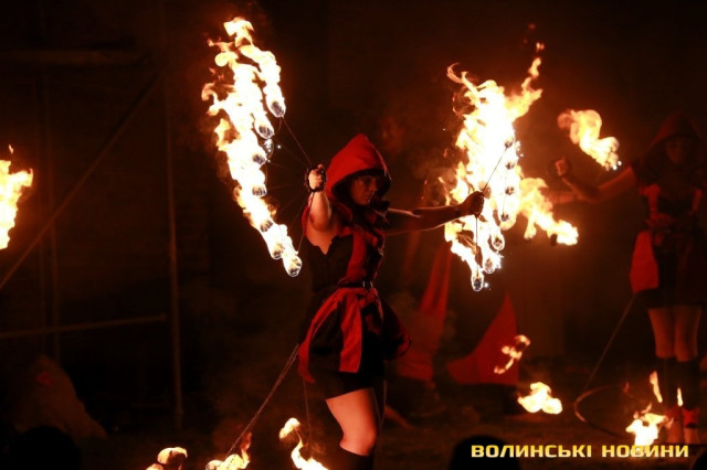 Створення казкової істоти, вогняне шоу, запальні виступи, перформанси та середньовічні розваги: у замку Любарта відбулося арт-шоу «Ніч у Луцькому замку».
