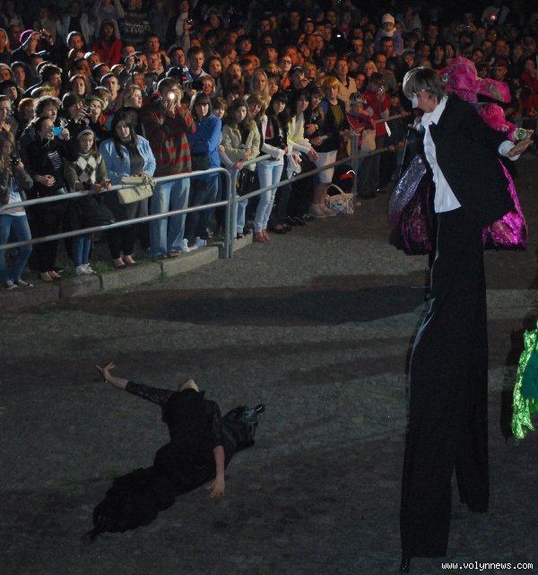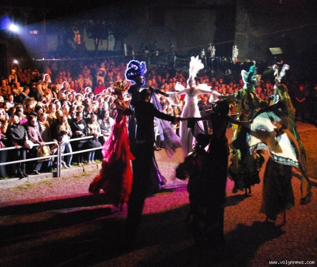 На мистецькому дійстві «Ніч у Луцькому замку» з 26 на 27 червня актори на ходулях танцювали танго, скульптури оживали, а кулінари приготували 80 літрів борщу