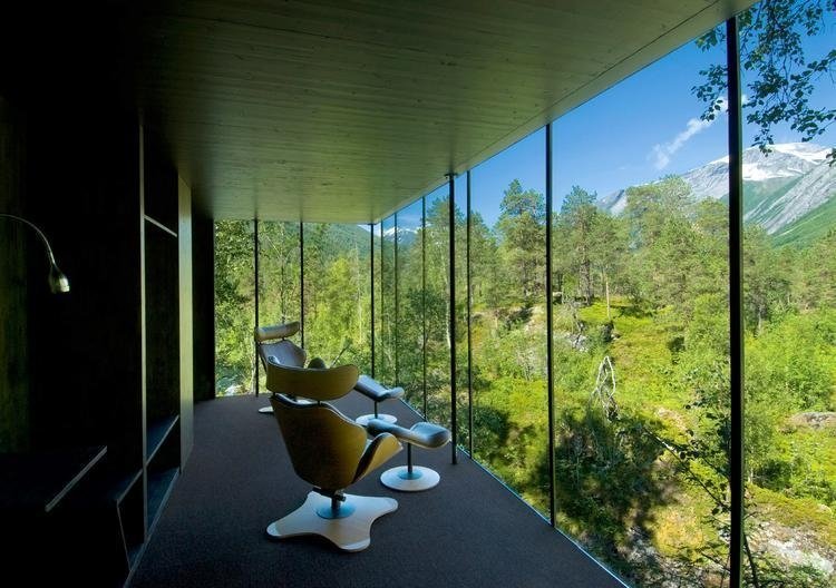 На березі річки у Вальдалі, що у західній Норвегії, знаходяться гостьові будинки «Juvet Landscape Hotel». Готель має прозорі скляні стіни, що дозволяє відчути справжнє єднання з природою, «пустивши» її у кімнату. Клієнти готелю можуть не боятися того, що хтось порушить їхній спокій. Усі гостьові будинки розташовані на відстані один від одного.