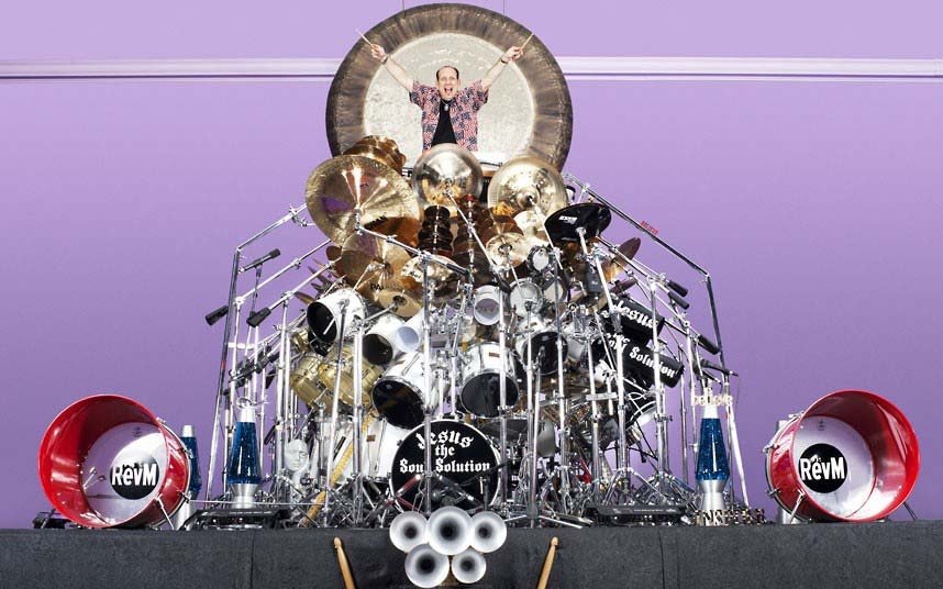 Найбільша барабанна установка в світі складається з 340 елементів. Її власник ‒ доктор Марк Температ з Лейквілля, штат Нью-Йорк. Він є членом групи під назвою «Jesus the Soul Solution». Він перевозить свої інструменти в спеціально створеному для цього фургоні.