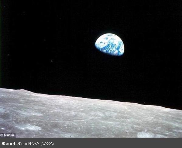 Одна із найбільш цікавих фотографій показує, як сонячне світло пробивається через земну кулю. Знімок був зроблений з орбіти Місяця членами команди Apollo 8 - першого польоту людини на Місяць, коли вдалося вийти на орбіту супутника Землі в переддень Різдва 1968 року.