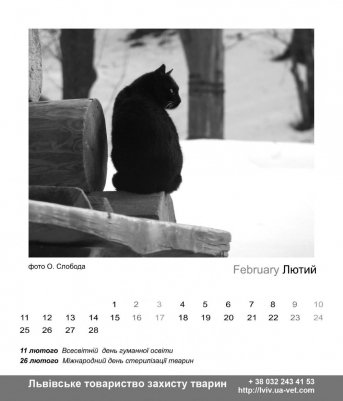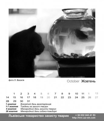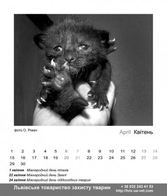 Так, під опікою Львівського товариства захисту тварин перебуває понад 250 собак і 50 котів. Уже п'ятий рік поспіль товариство випускає календарі, кошти від продажу яких підуть на утримання тварин та прилаштування їх у добрі руки. Коштує такий календар 15 гривень.