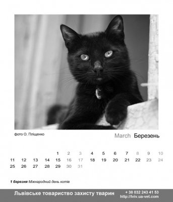 Напередодні Дня захисту чорних котів – 17 листопада, львівські захисники тварин вп'яте презентували календар. Цього разу лише з чорними котами, яких підібрали волонтери на вулиці.