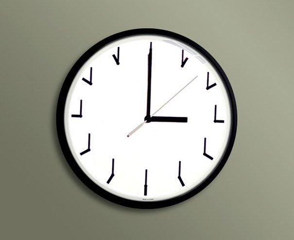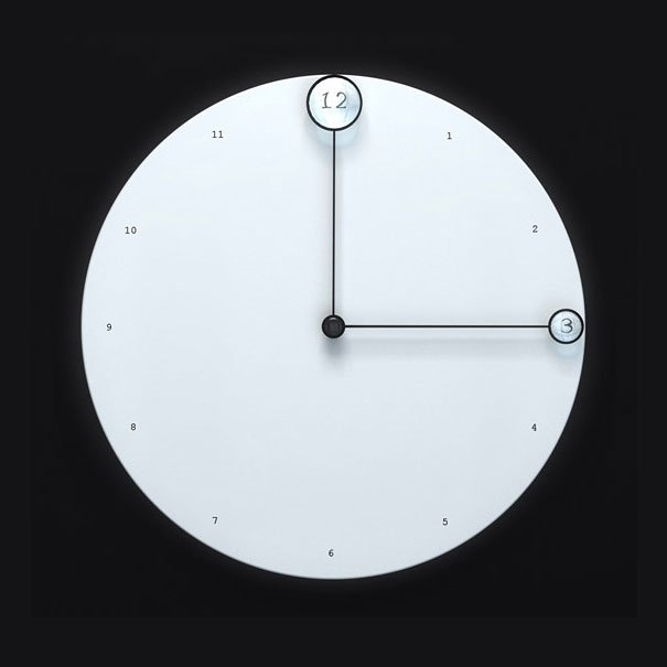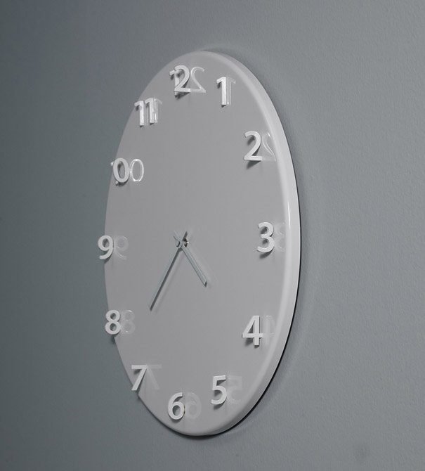 Цифри розташовані перпендикулярно до циферблату, тому годину можна визначити за тінню.