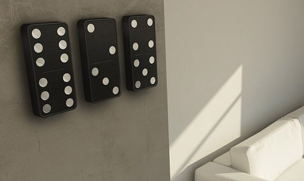 Дизайнер використав доміно. Кількість точок відповідає годинам і хвилинам.