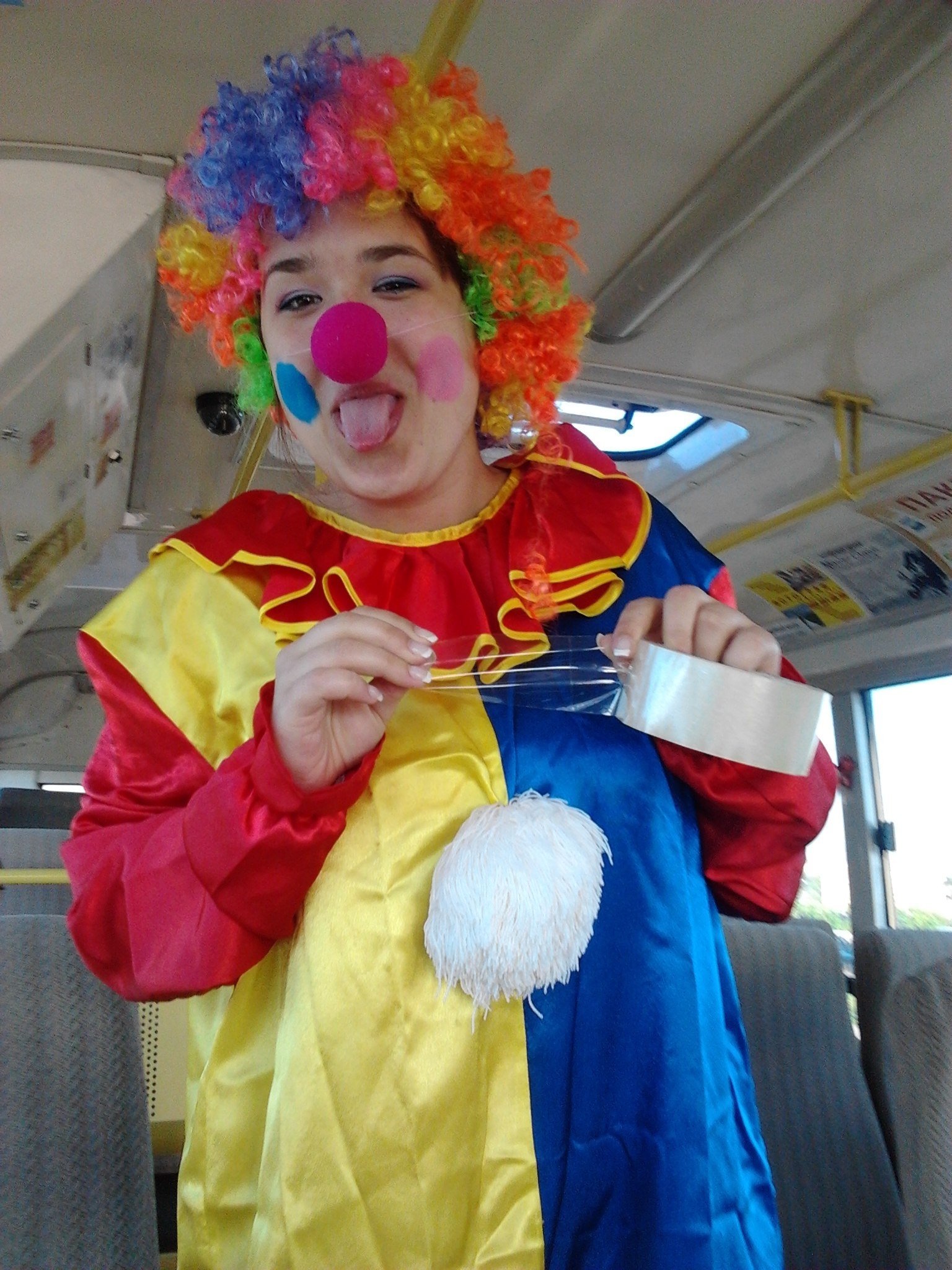 Із вікон автобуса звучала гучна музика, що привертала увагу перехожих лучан. Салон був заповнений кольоровими кульками, а веселий клоун зустрічав дітей з цікавими конкурсами, подарунками і танцями.