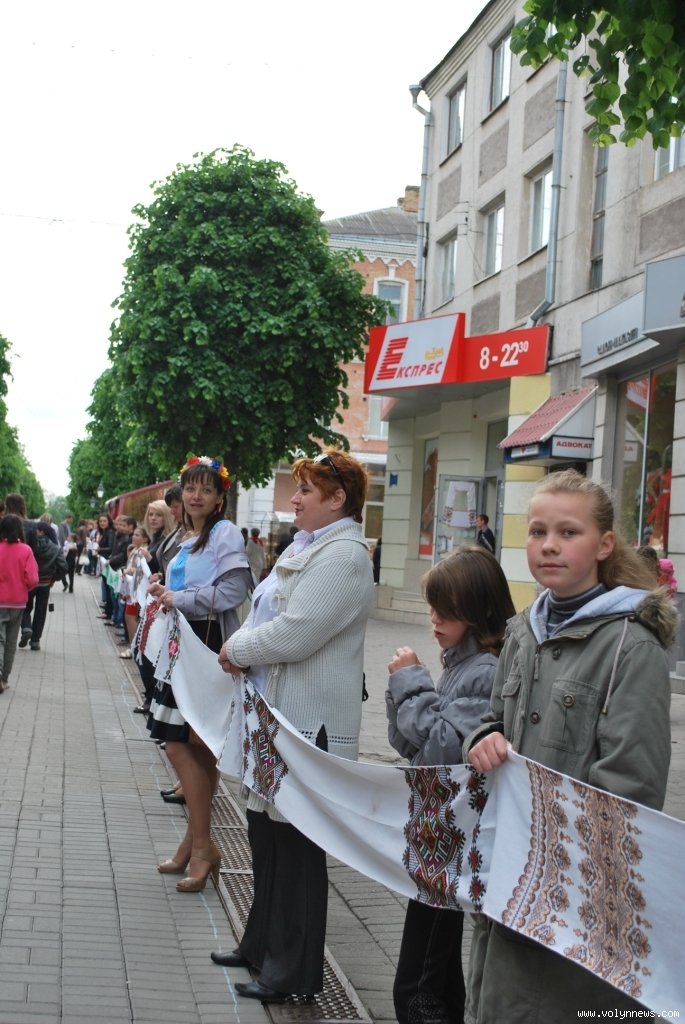 Після урочистого відкриття фестивалю розпочалася, власне, його основна частина. Лучани, які вирішили взяти участь у фестивалі і прийшли на Театральний майдан з рушниками, вишикувалися один за одним від площі вздовж вулиці Лесі Українки. Вони тримали рушники, притуливши їх один до одного. Зрештою, утворився такий собі вишиваний рушник, завдовжки декілька сотень метрів, приблизно до перехрестя вулиць Лесі Українки й Сенаторки Левчанівської.