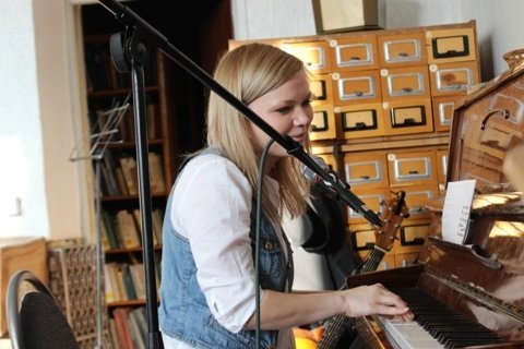 Другою на сцену вийшла одна з співзасновниць «Гойдалки» Катя Почапинська. Вона заспівала декілька теплих пісень під акомпанемент піаніно та виконала гімн мистецької майстерні.