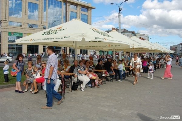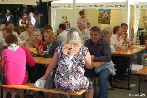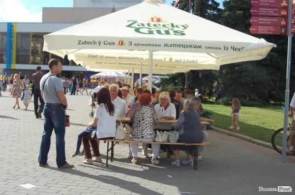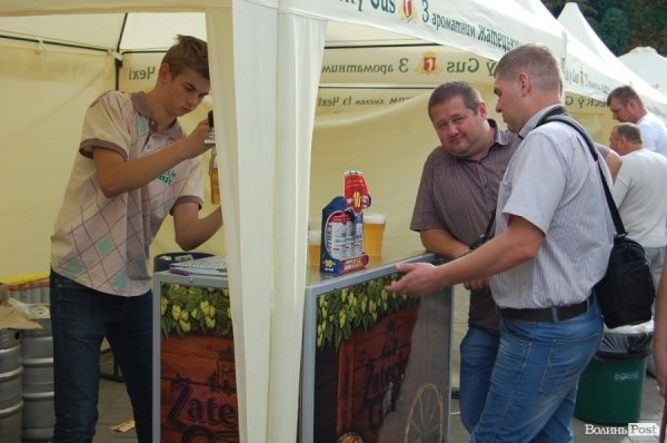 У центрі Луцька встановили приблизно 20 пивних наметів, у 8 з яких продавали пиво усім охочим. Ціна – 10 гривень за бокал пива «Zatecky Gus» або «Балтика». В інших - продавали закуски, серед яких були хот-доги та смажені сосиски.