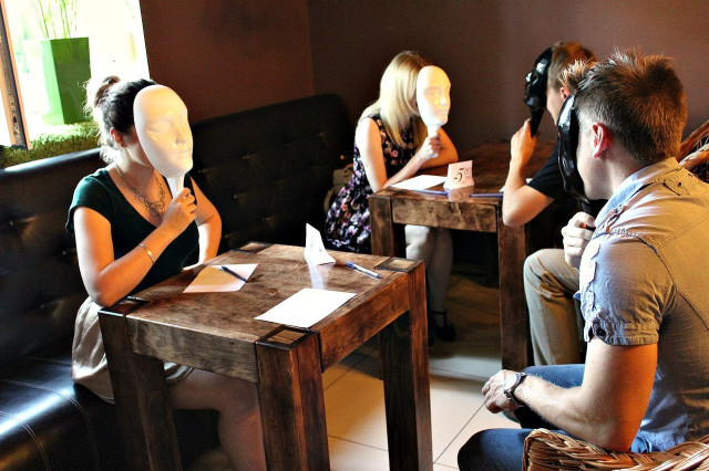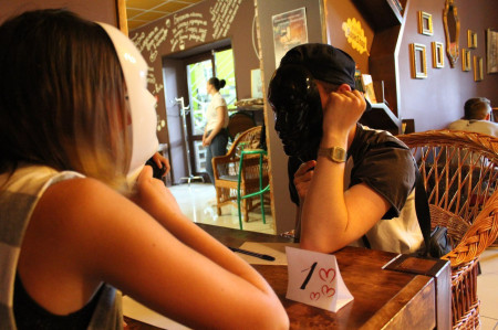 «Побачення наосліп» відбувалися під грифом «цілком таємно». Обличчя усіх учасників були закриті масками. До того ж організатори подбали, аби «спраглі до кохання» не зустрілися перед початком дійства, тому представниці прекрасної статі чекали своїх таємничих кавалерів вже всередині будинку.