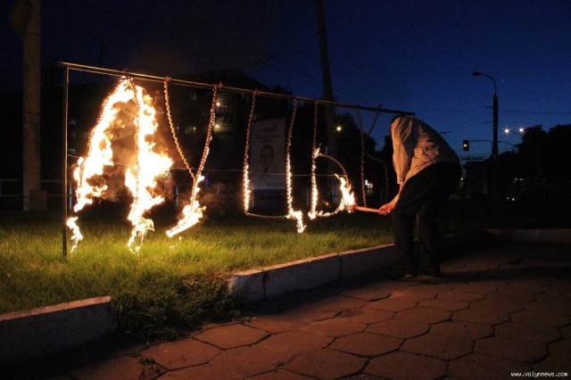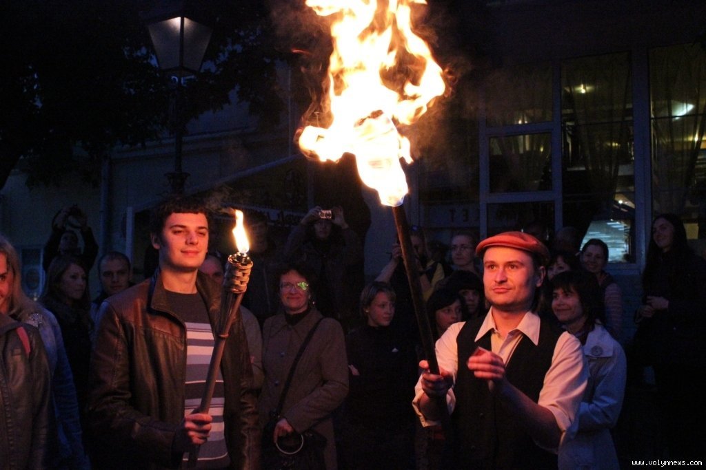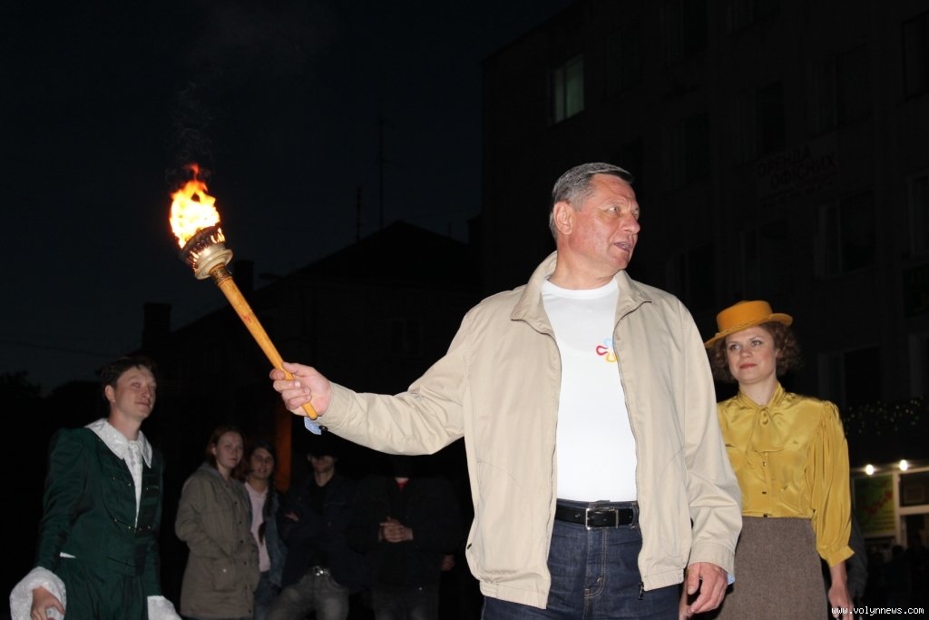 Кінець туристичної мандрівки вулицею Лесі Українки прикрасив мер Микола Романюк. Він у прямому значенні «запалив» Луцьк.