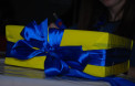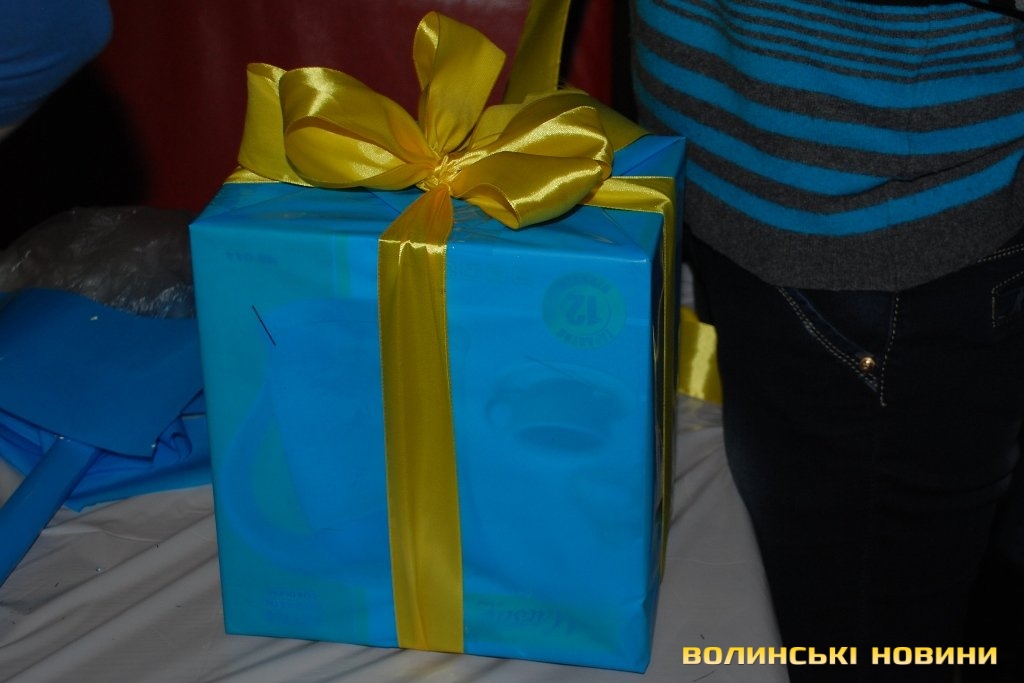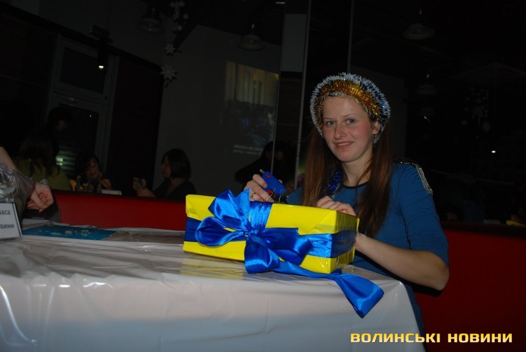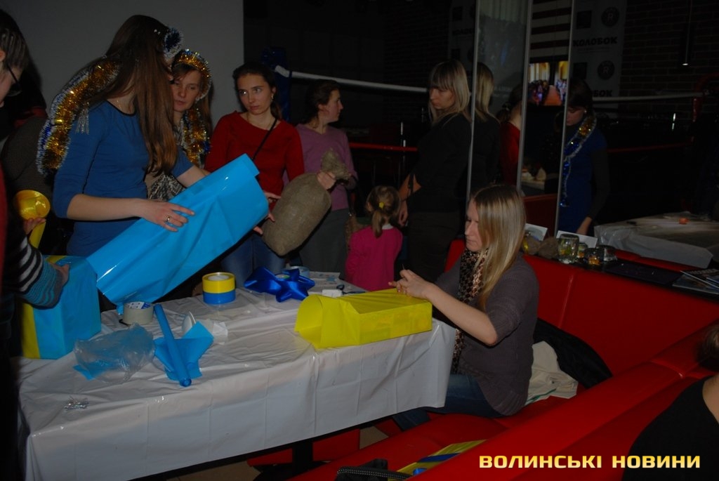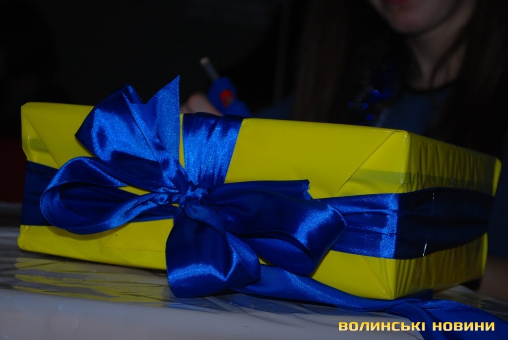 Ялинкові прикраси від луцьких мам мають вигляд великих пакунків з подарунками і оформлені у національних кольорах.