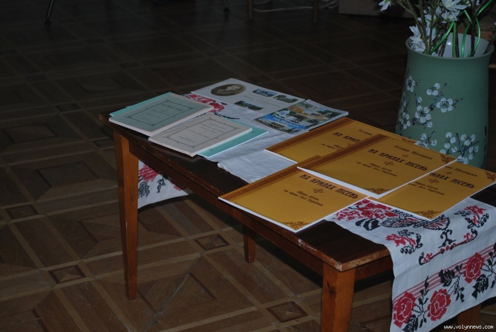 Волинська співачка Тетяна Ціхоцька презентувала нове нотне видання – збірку власних пісенних творів «На крилах пісень», створених на вірші Лесі Українки. Презентація відбулась у Волинському обласному краєзнавчому музеї.