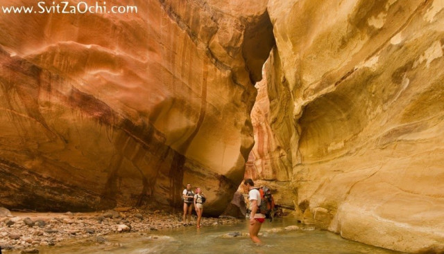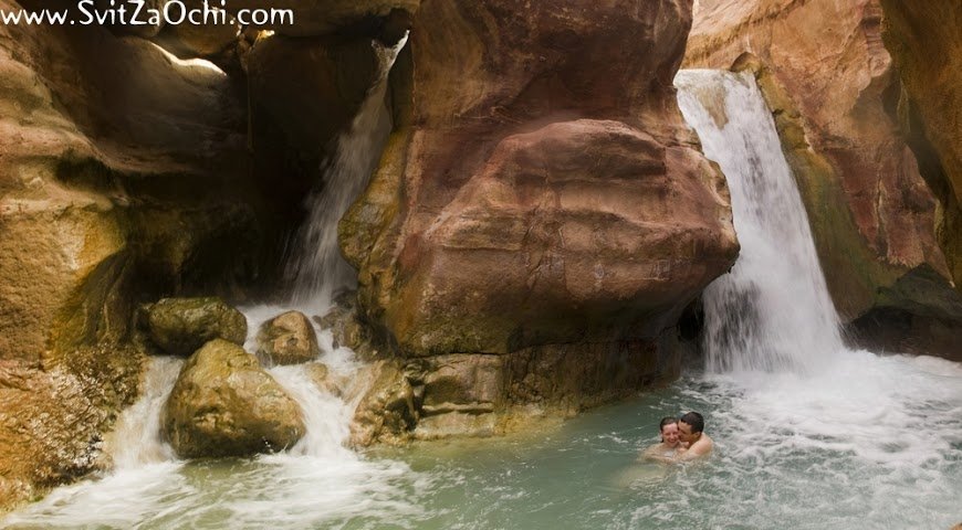 Каньйони біля Мертвого моря - ми пройдемо по дну річки, затисненої серед червоних стін. Серед каньйону - красивий водоспад. І що приємно - вода в річці бере початки з термальних джерел, тому мерзнути не доведеться.